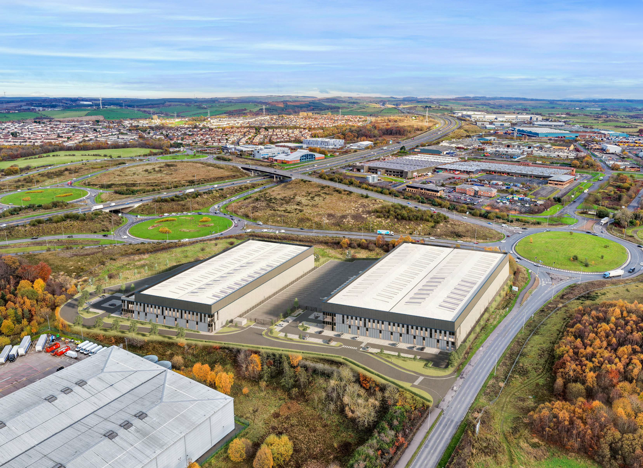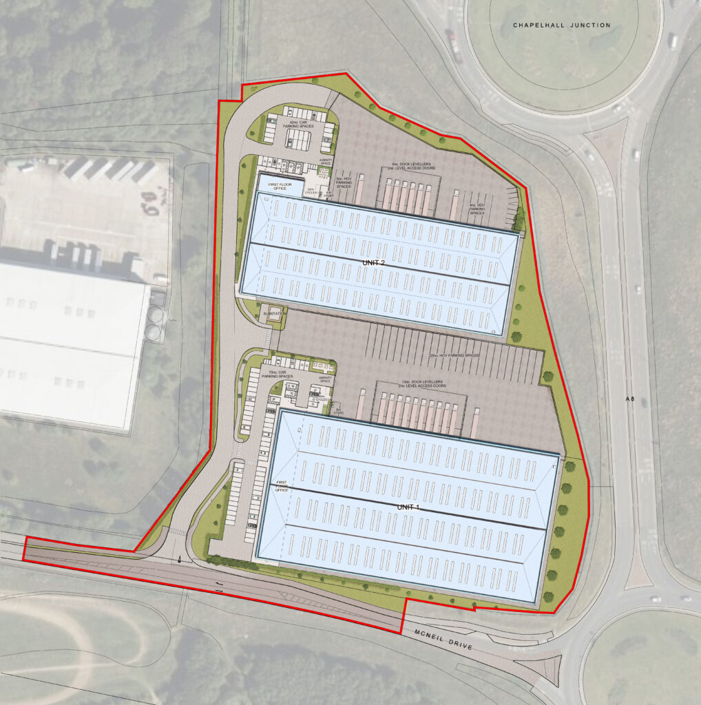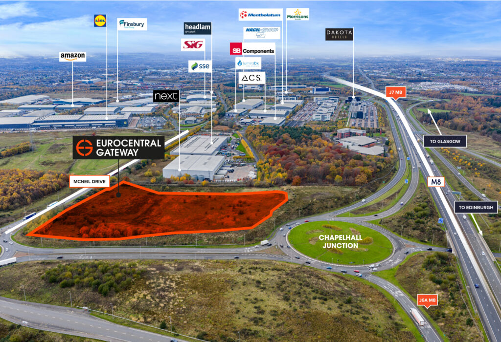 The development occupies a highly prominent, elevated position immediately adjacent to the new Junction 6A junction of the M8 motorway and the Chapelhall junction of the A8, providing exceptional access, connectivity and profile, making it stronger than the original Eurocentral access and the best industrial site on the M8 corridor.