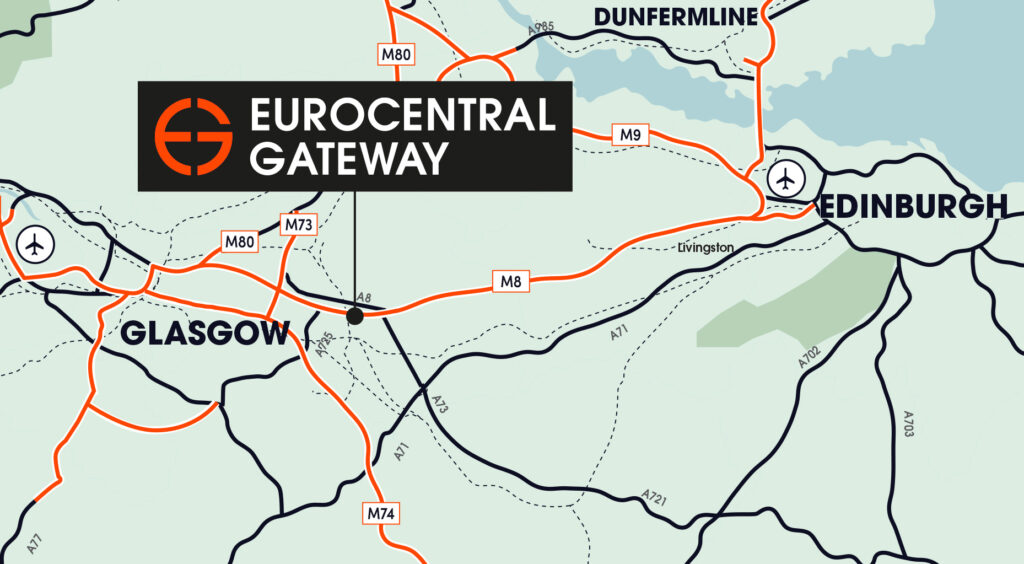 Eurocentral is situated on the M8 corridor, approximately 11 miles east of Glasgow and 30 miles west of Edinburgh. Eurocentral has unrivalled connectivity, with its own dedicated junction 7 on the recently upgraded M8 motorway linking Glasgow and Edinburgh. The eastern entrance